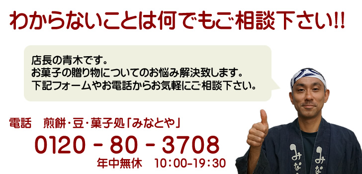 会社を退職する時にみなとやさんの七福にゃんべいと文字入りおせんべいを配り、皆さんに「カワイイね、どこで頼んだの?今度使ってみようかな」と言っていただけました。以前も長期で入院し、退院の際にお願いしたのですが、物だけでなく、感謝の気持ちも言葉(文字)にしてあげれるのは嬉しいです。大勢の人にあげたので、金額がかなりかかったので、もう少し小さいバージョンで安いのも作っていただけると助かります。