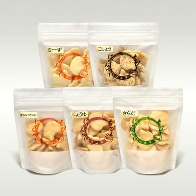ちびにゃんべい|人気5種セット(しょうゆ・こしょう・サラダ・はちみつざらめ・チーズ)のレビューを書く