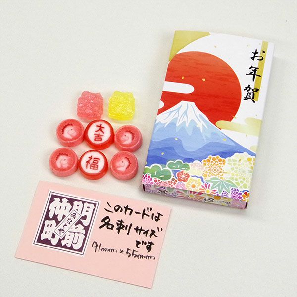 他の画像を見る お年始のご挨拶に最適 年賀飴(干支タイプ) 販売価格: ¥ 260 税込 在庫切れ お年賀の小さなパッケージの中にはその年の干支柄の細工飴と五円硬貨のお守りが入っています。ちょっとした年賀のプレゼント・プチギフトに好評です。 商品を見る お気に入りに登録する
