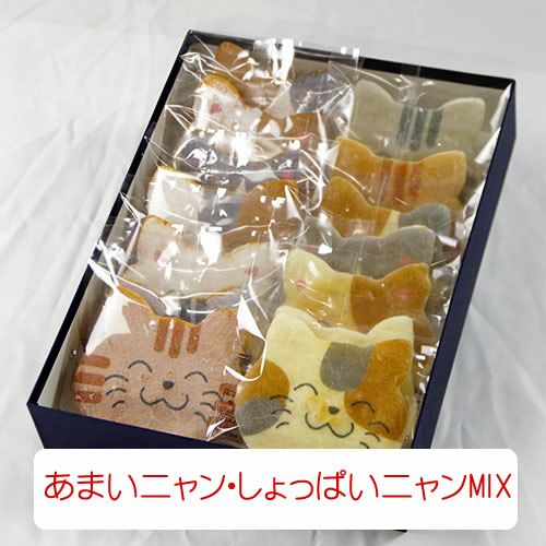 他の画像を見る にゃんべい(20枚入り箱) 詰め合わせ 販売価格: ¥ 3,350 税込 化粧箱に入った猫の形をしたお「せんべいです。箱の中には20枚の猫型せんべい「にゃんべい」が入っています。味付けはアソートで季節により変わります。 商品を見る お気に入りに登録する