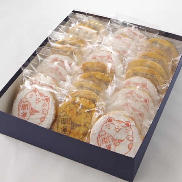 他の画像を見る 招き猫せんべい(30枚入り箱) 販売価格: ¥ 4,900 税込 化粧箱に入った「招き猫のイラスト」せんべいです。箱の中には10枚の招き猫せんべいが入っています。 商品を見る お気に入りに登録する